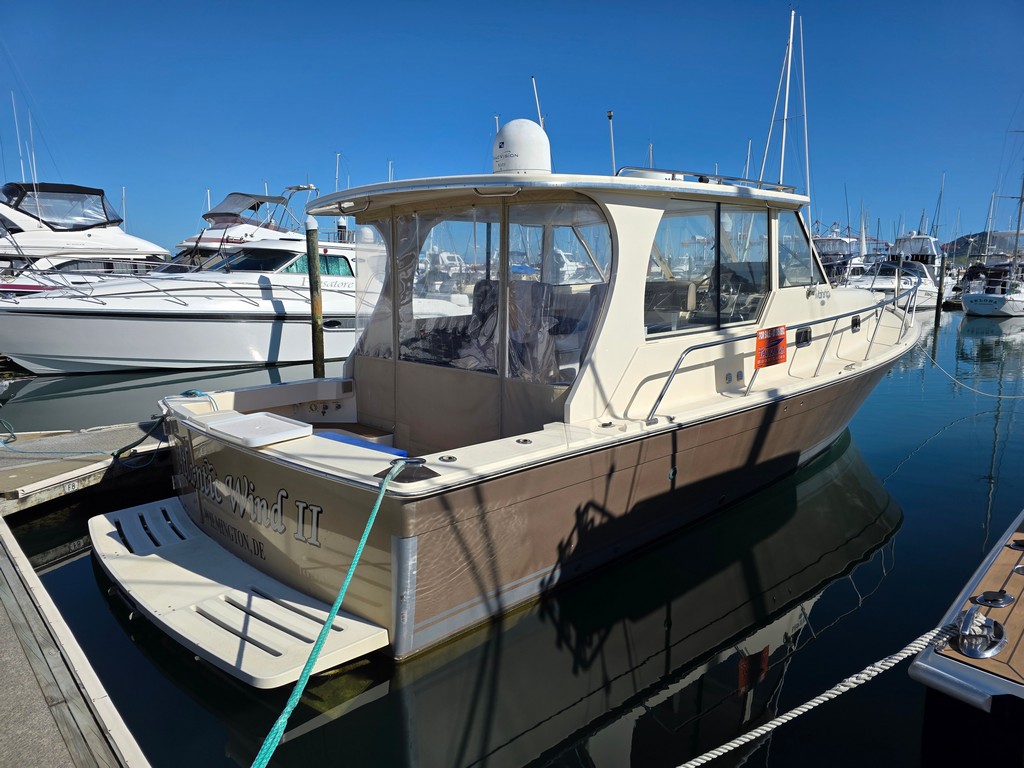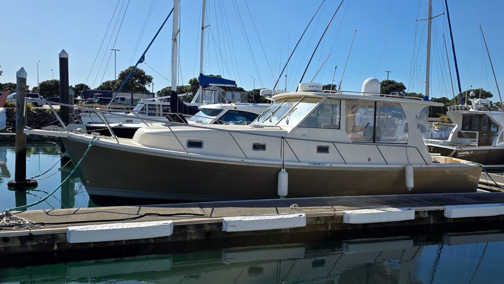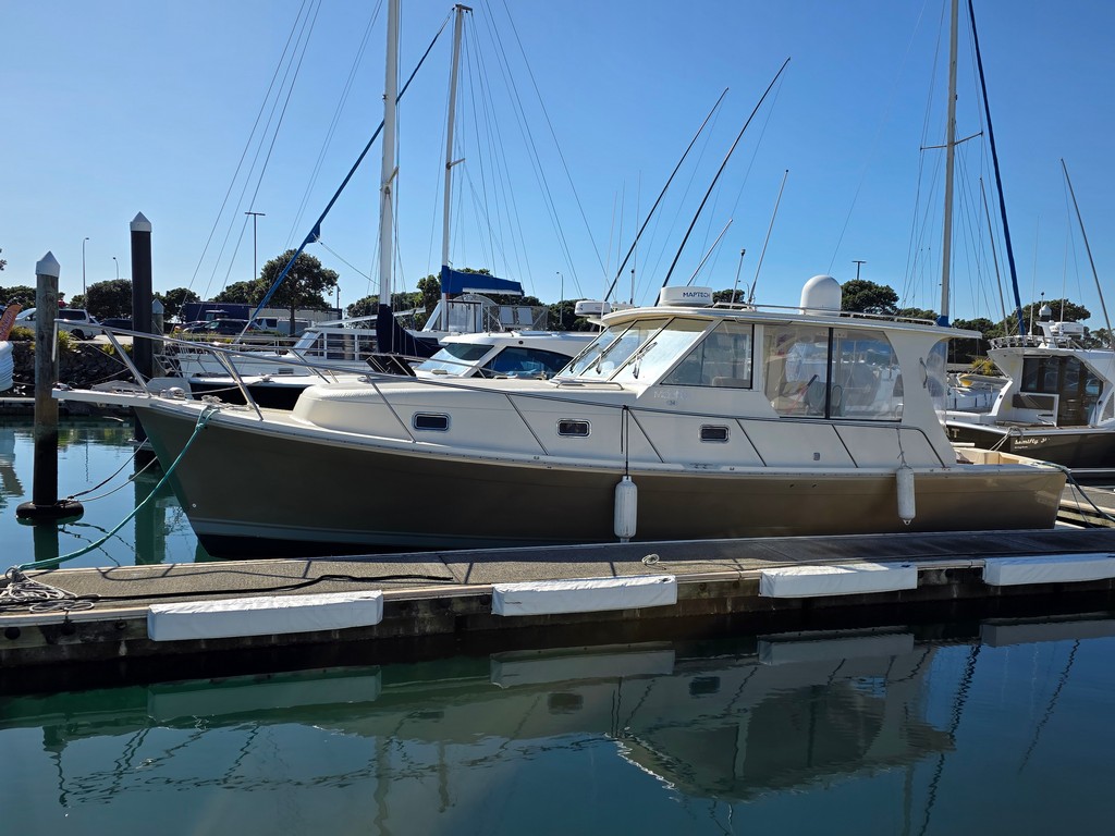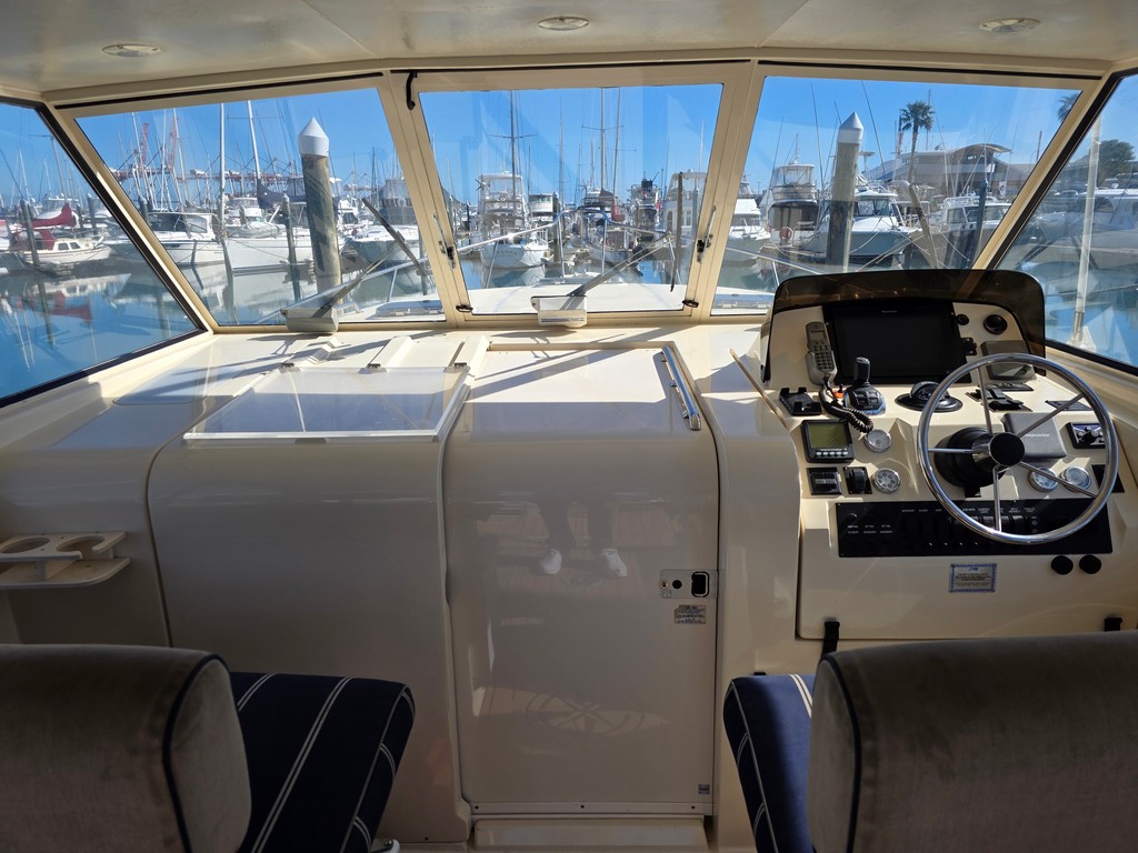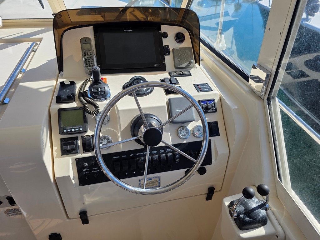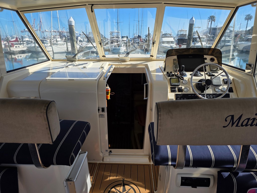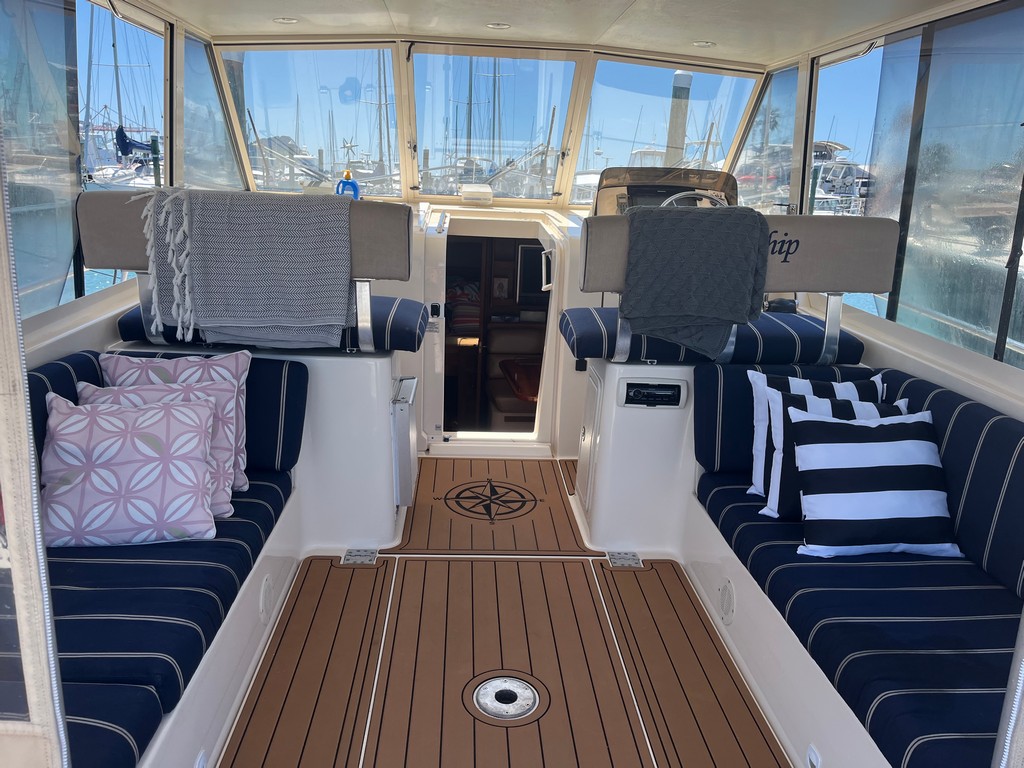 “The Mainship Pilot 34 has fantastic social flow also great helm visibility with the docking ease of Volvo Joy stick control, Here is a tidy sedan vessel ready for the summer”