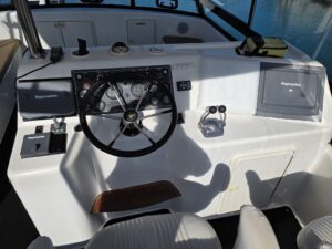 taurangaboatsales.co.nz > Listings > Launches > Riviera 43 Flybridge Cruiser (1998) > Flybridge Sterring