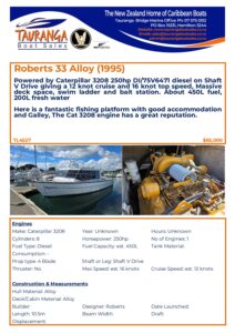 taurangaboatsales.co.nz > Listings > Launches > Roberts 33 Alloy (1995) > Spec Sheet Roberts 33 (1995)